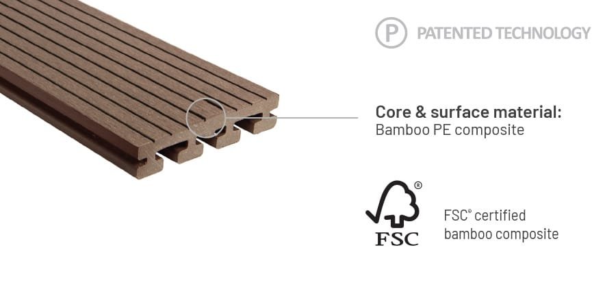 Eva-tech IS combines all the benefits of Eva-tech bamboo composite with the advantages of I-Series to give you cost-effective bamboo composite decking, offering slip resistance, low maintenance, reliable durability, and decay and weather resistance, as well as environmental benefits. The smart I-beam design creates a lightweight board that uses less material to save on transportation, substructure, and labour, yet maintains span capabilities and allows for more efficient installation.